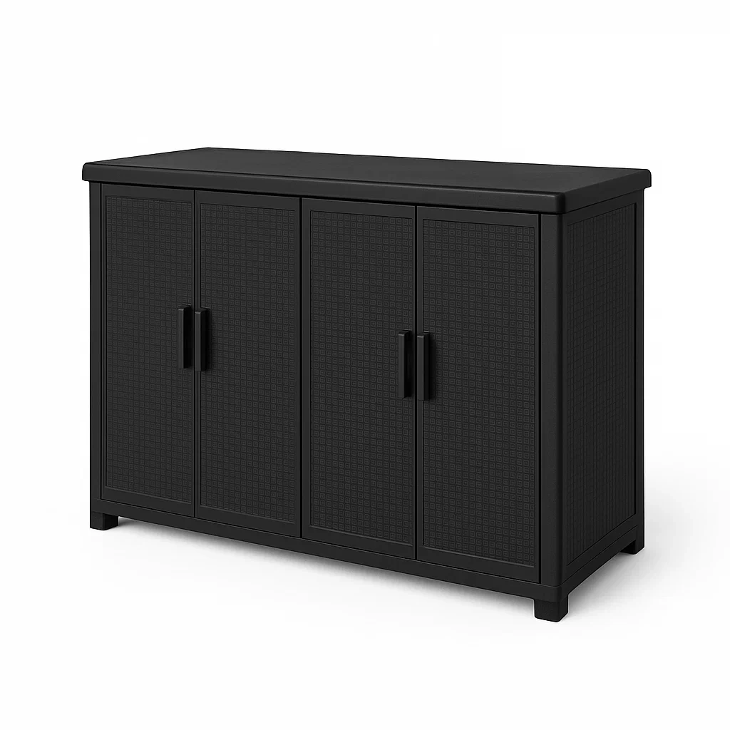 Armario de almacenamiento de plástico negro con 4 puertas
