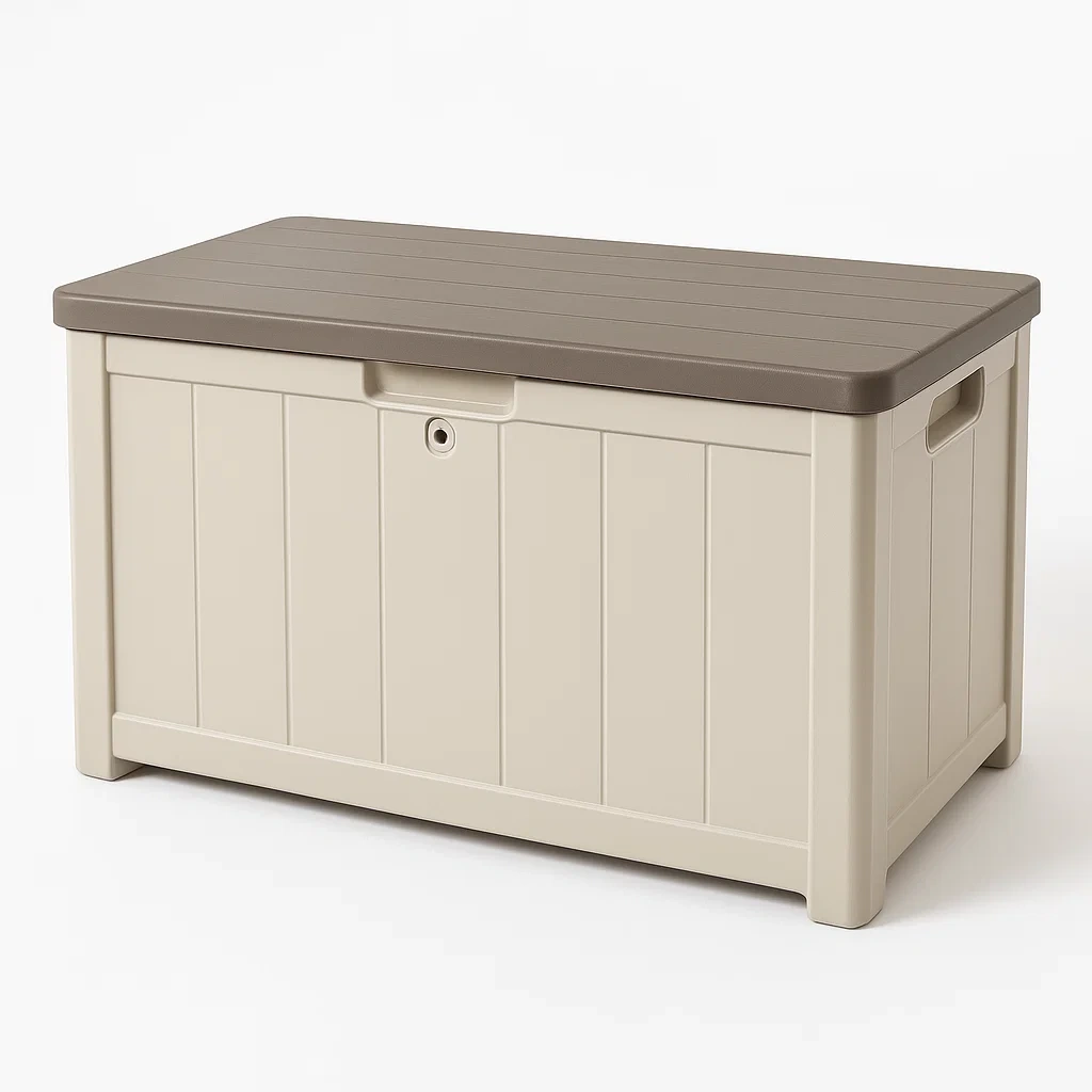 Baúl de almacenamiento de plástico beige y marrón 117x45x57 cm